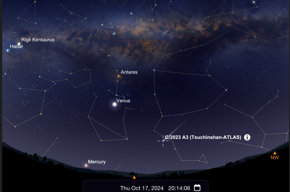 Comet A3 made its closest approach to the Sun on September 28, at about 59 million km. That's the riskiest time for a comet, which can break apart because of the sun's influence. It's what makes comets, and in particular their future brightness, incredibly difficult to predict. At the time of writing, it appears to have survived the encounter. It will pass closest to Earth on October 12, when it will pass about 71 million km from Earth.