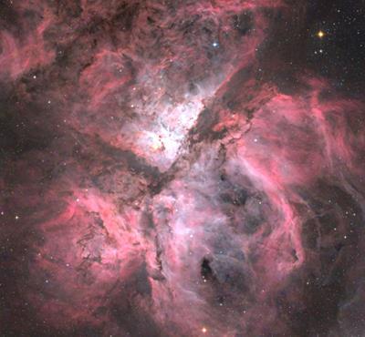The southern Milky Way holds one of the most enigmatic and exotic stars known. Eta Carinae is the centerpiece and ionizing star of the great HII region, the Eta Carinae Nebula. The nebula itself spans some 260 light years across, about 7 times the size of the Orion Nebula. Massive is an understatement as the great star weighs in at some 100 to 150 solar masses and shines with the light output of 5 million suns. The young supergiant star (only 2 to 3 million years old) pumps out as much energy in 6 seconds as our sun does in an entire year!