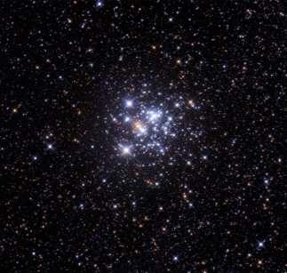 It was discovered by Abbe Lacaille during a trip to South Africa in 1751-1752. Located just 1o from Beta Crucis in the Southern Cross, at 14 million years of age, it is one of the youngest clusters known.