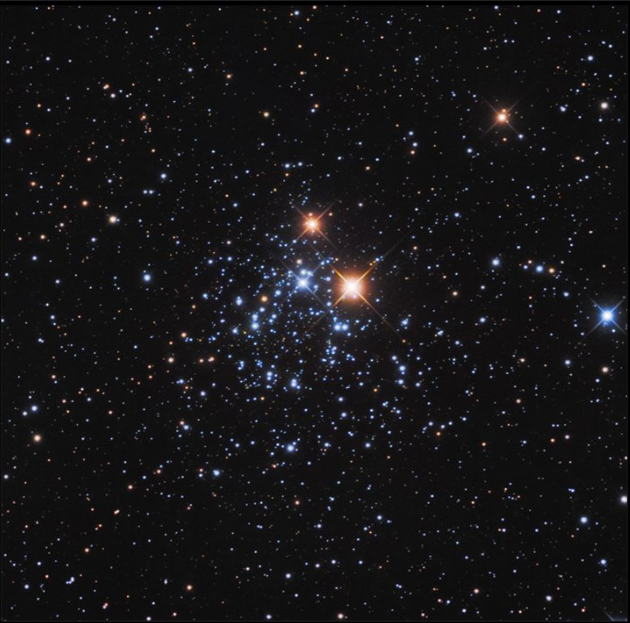 NGC 2439, discovered by British astronomer, John Herschel, on 28 January 1835, is an open cluster located in the constellation of Puppis, just south of Sirius. The cluster contains approximately 600 stars and is believed to have formed out of a giant molecular cloud about 200 million years ago.